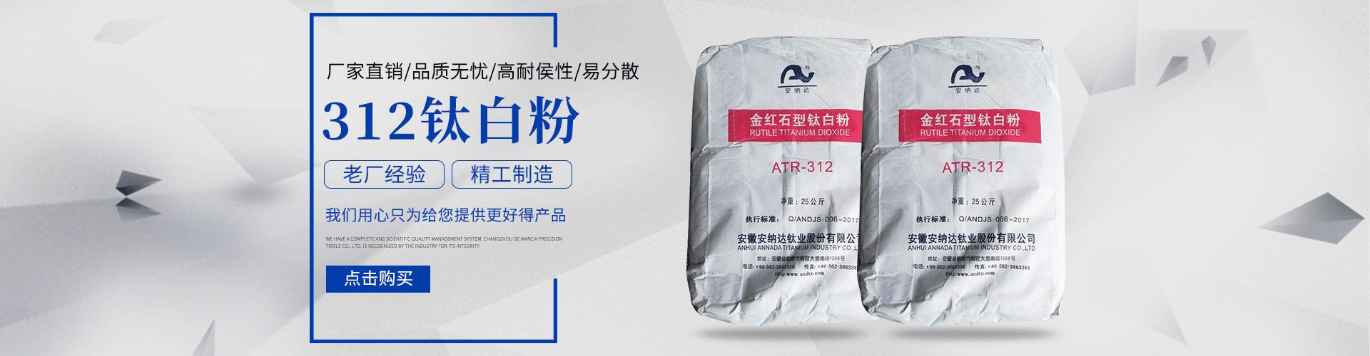 常州安鈦化工有限公司經(jīng)銷批發(fā)的鈦白粉、沉淀硫酸鋇、立德粉、滑石粉、高嶺土、炭黑、云母粉、彩色顏料、氫氧化鈣、硅微粉、氧化鐵紅、氧化鐵黑、金紅石型鈦白粉、銳鈦型鈦白粉、進(jìn)口鈦白粉暢銷消費(fèi)者市場,在消費(fèi)者當(dāng)中享有較高的地位,公司與多家零售商和代理商建立了長期穩(wěn)定的合作關(guān)系。常州安鈦化工有限公司經(jīng)銷的鈦白粉、沉淀硫酸鋇、立德粉、滑石粉、高嶺土、炭黑、云母粉、彩色顏料、氫氧化鈣、硅微粉、氧化鐵紅、氧化鐵黑、金紅石型鈦白粉、銳鈦型鈦白粉、進(jìn)口鈦白粉品種齊全、價格合理。常州安鈦化工有限公司實(shí)力雄厚,重信用、守合同、保證產(chǎn)品質(zhì)量,以多品種經(jīng)營特色和薄利多銷的原則,贏得了廣大客戶的信任。